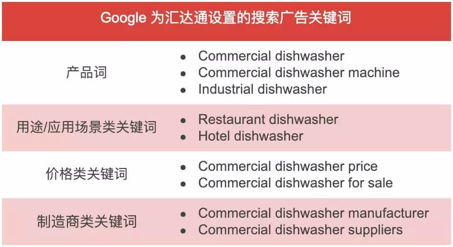 四川的商用洗碗机制造商汇达通,在 2016 年之前还都专注于国内业务,毫无出口经验;但在不到 1 年的时间里,新加坡政府采购项目就直接找到了他们,在新加坡“搞出一个大新闻”。Google Ads 就是这个故事中神奇的推动力。